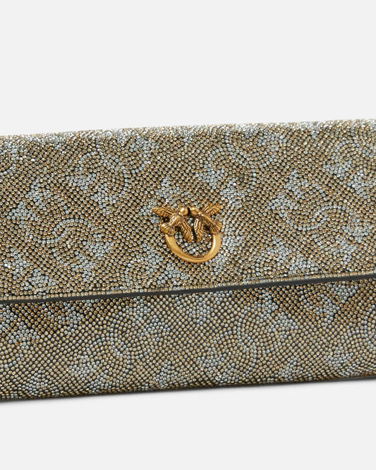 Portafoglio in pelle full strass con tracolla