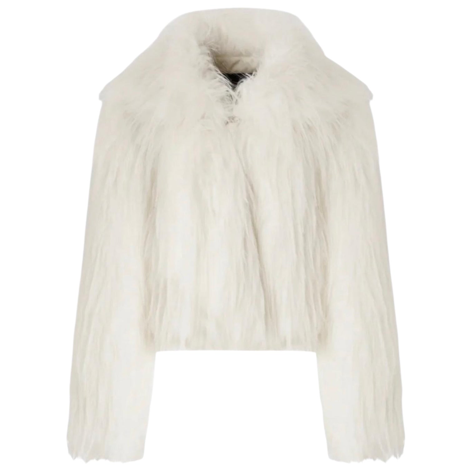Giacca stile caban Pinko con collo ampio e avvolgente realizzata in morbido tessuto Aspen effetto pelliccia. Il capo è completato da una chiusura frontale nascosta.