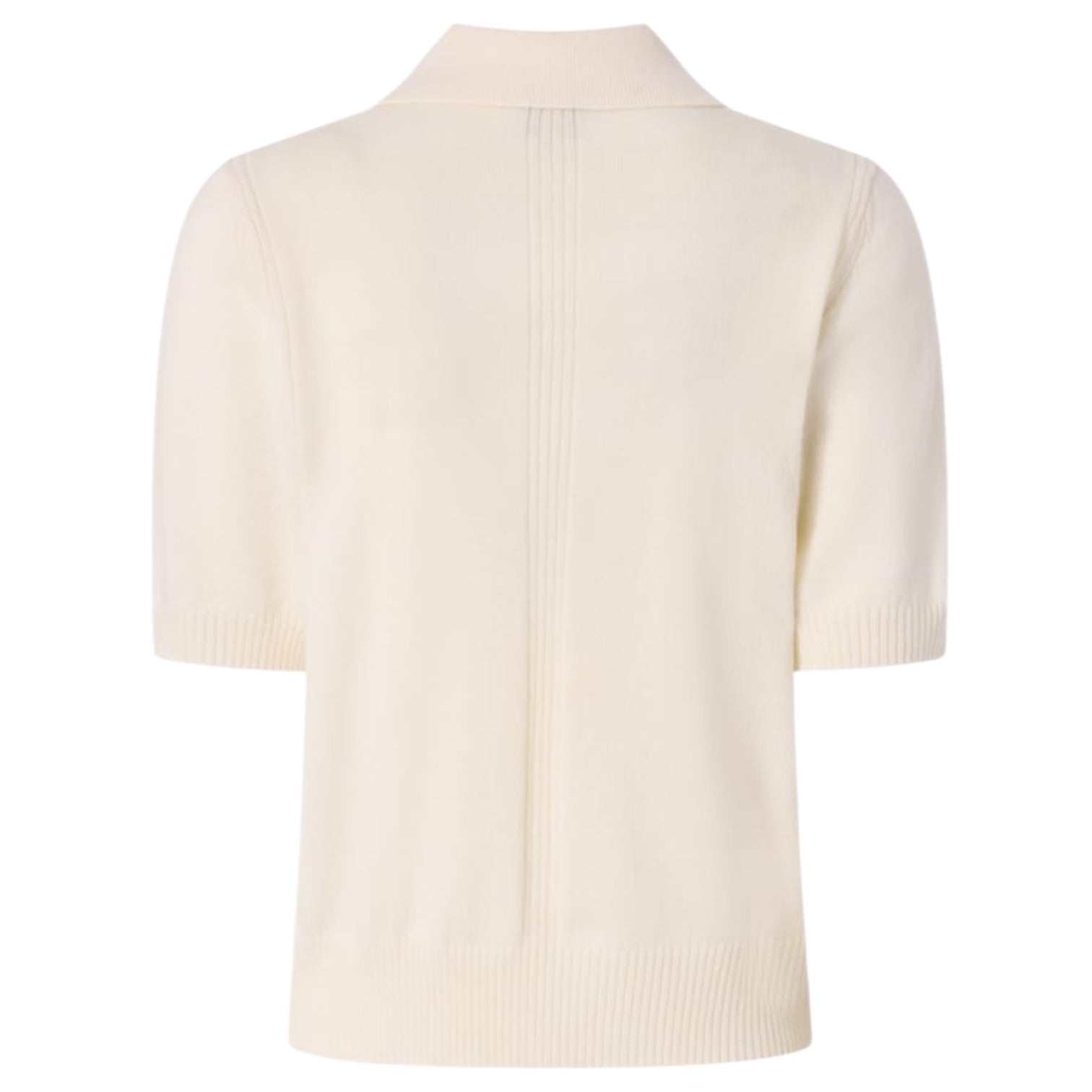Maglia Pinko corta stile polo dalla linea aderente in filato di misto lana merino e cashmere a mezza manica. La maglia è arricchita dalla lavorazione a coste dei bordi delle maniche e del maglioncino e dall’ etichetta tono su tono con logo lettering Pinko sul davanti. Il filato a contrasto mette in risalto la pattina impreziosita da tre bottoni.