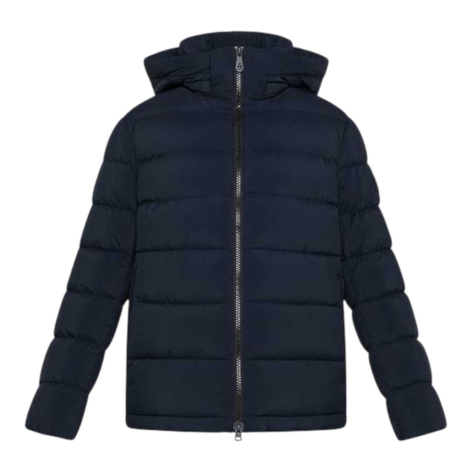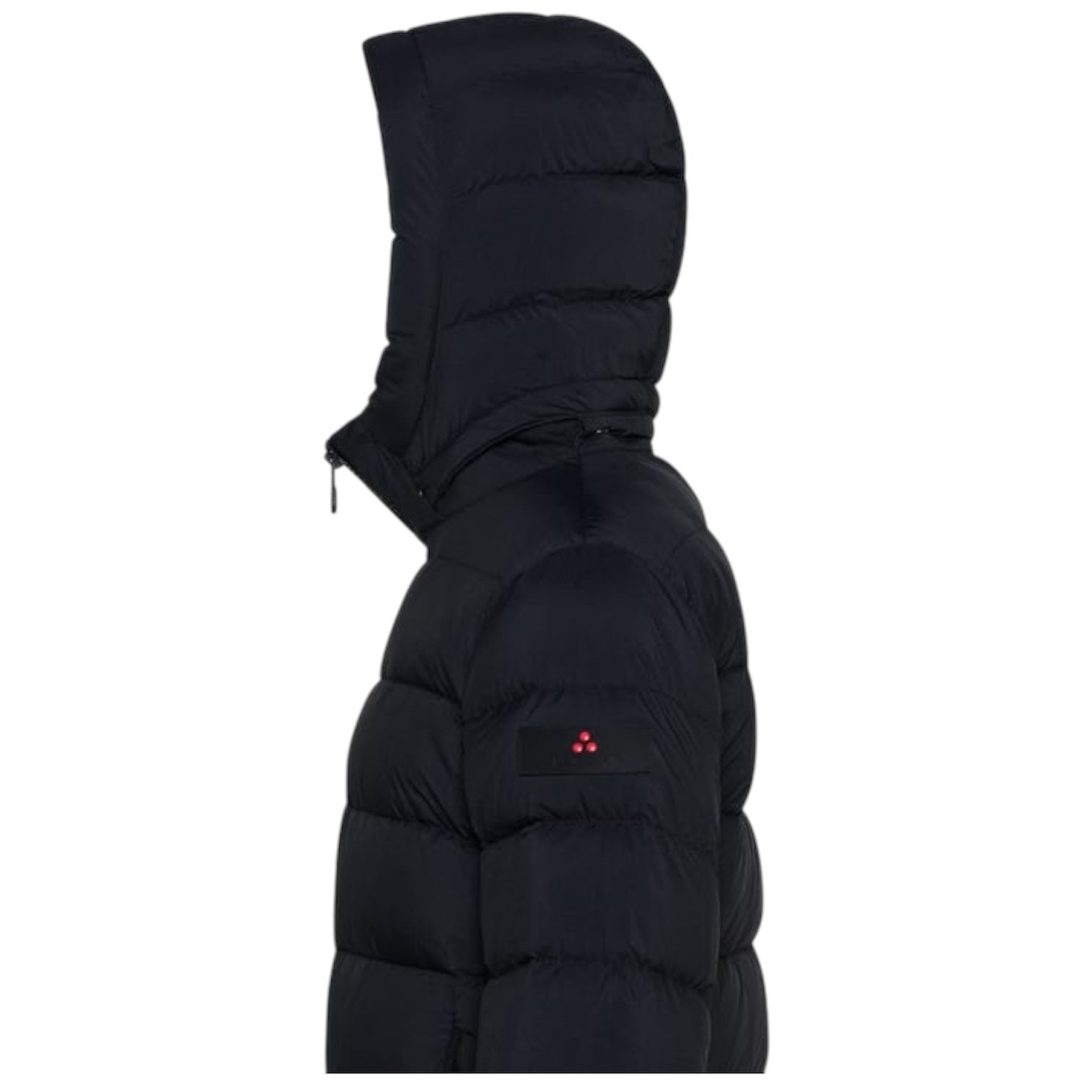 Piumino Peuterey leggero e trapuntato realizzato in tessuto riciclato di nylon dal peso di soli 50 grammi, con finitura semi opaca e costruzione downproof che impedisce la fuoriuscita delle piume. L’ interno è composto da un imbottitura in piuma naturale certificata e il tessuto esterno è idrorepellente. Il cappuccio è fisso e le tasche laterali a filetto.