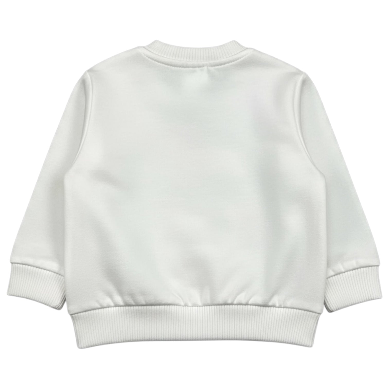 Felpa girocollo Moschino a maniche lunghe realizzata in cotone. Chiusura con bottoni automatici sulla parte superiore della spalla, orlo e polsini rifiniti a costine. Il capo viene arricchito dalla stampa Teddy Bear che legge un libro.