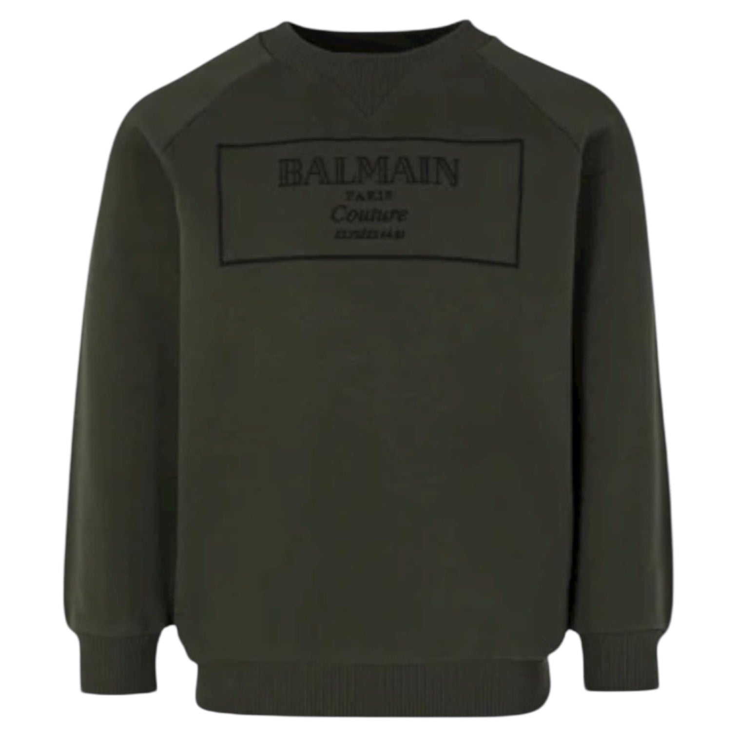 Felpa girocollo Balmain realizzata in cotone. Il capo viene impreziosito sulla parte frontale dal logo ricamato a contrasto. Polsi e orlo rifiniti a coste.