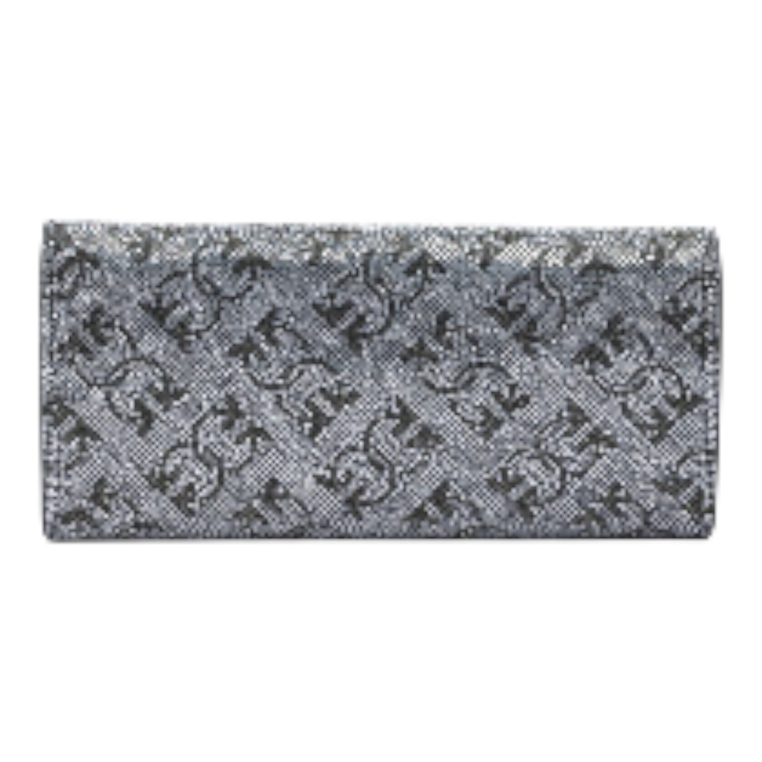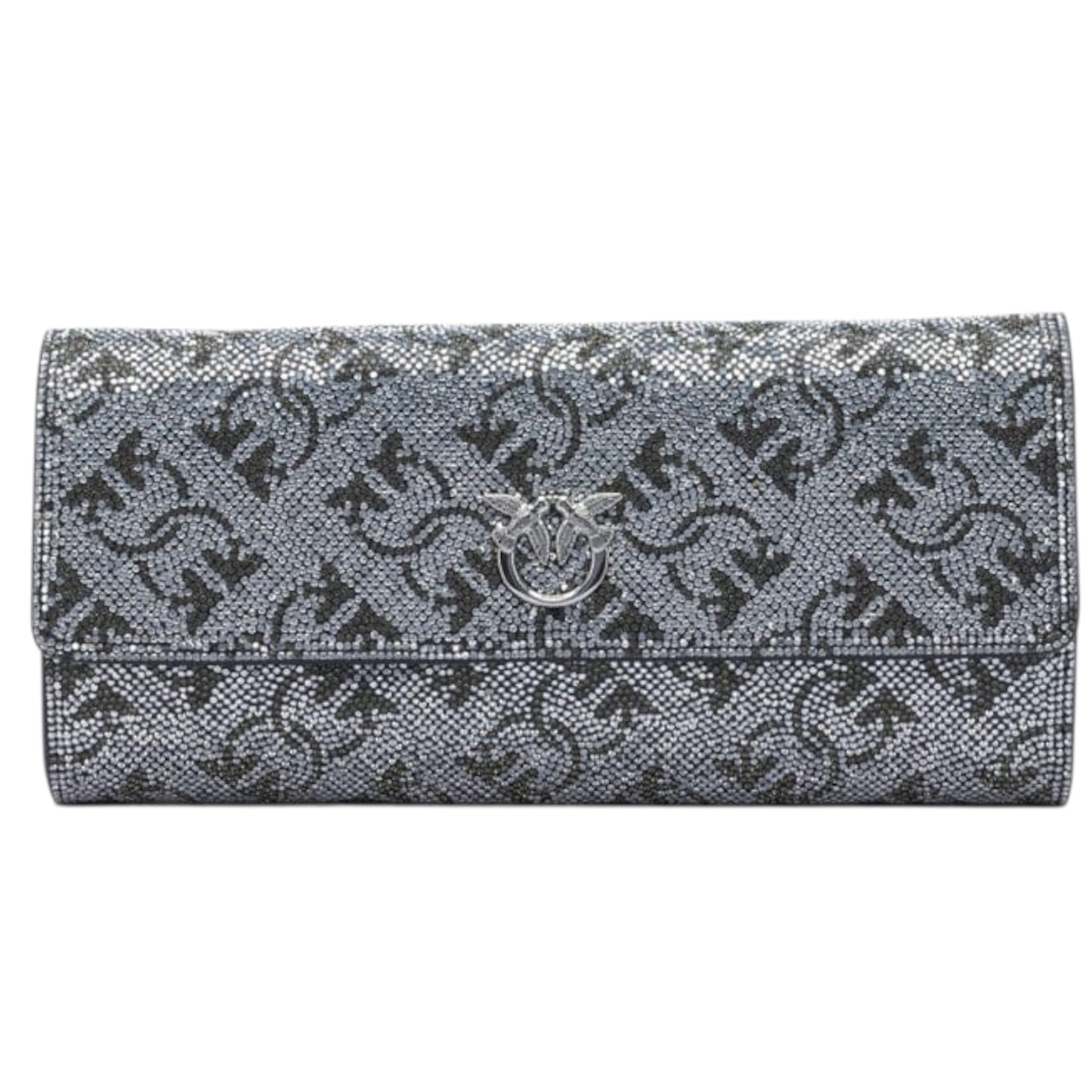 Portafoglio Pinko realizzato in pelle e dotato di una tracolla a catena e pelle per la portata a mano oppure crossbody. L’ accessorio è composto da diversi scomparti con chiusura zip e porta tessere. Il portafoglio è interamente rivestito di strass di diversi colori che formano un motivo monogram all over che lo rende molto scintillante. Il tocco finale è dato dalla placca rappresentante il logo Love Birds.