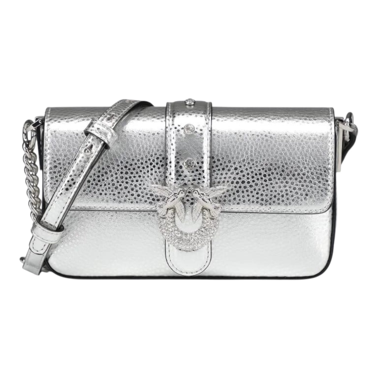 Borsetta Pinko a spalla piccola Love Bag One Slouchy realizzata in pelle laminata e bottalata. L’ accessorio è dotato di una tracolla regolabile in pelle e catena per la portata a spalla o crossbody. La chiusura a battente è completata dalla fibbia arricchita da piccole borchie in metallo e cristallo e dal logo Love Birds Diamond Cut. L’ interno della borsetta è foderata in tessuto stilo di cotone e include una tasca a parete con chiusura a zip.