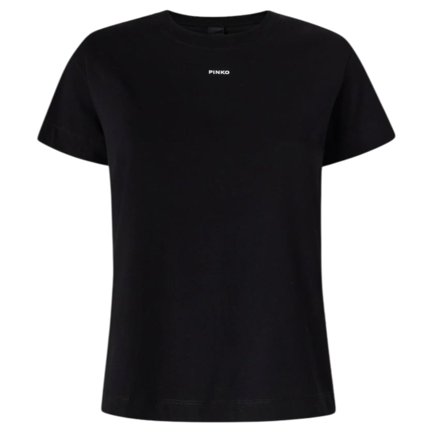 T-shirt Pinko girocollo a manica corta in Jersey di cotone con logo lettering Pinko stampato in piccolo sul davanti.